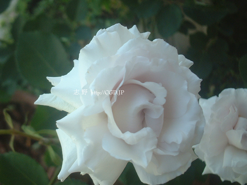 色・形:白に薄い紫とグレーがかった色、花径7cm